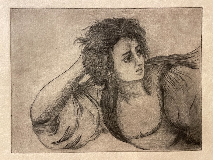 Kaltnadelradierung auf Zink, 10 × 7,5 cm, Adaption (Detail) nach A. Gentileschi,
