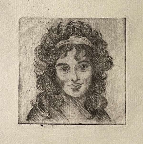 Kaltnadelradierung auf Zink, 5x5 cm, Detail/Adaption: Vigée le Brun: