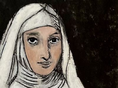 Tetrapak-Druck, koloriert, Adaption nach Sofonisba Anguissola, Porträt ihrer Schwester Elena, 1551 — Die Töchter der Familie Anguissola erhielten eine ungewöhnlich umfassende Ausbildung, die in dieser Zeit eigentlich nur Männern vorbehalten war. Sofonisba, Lucia, Europa und…