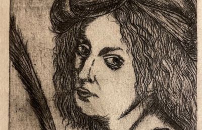 Kaltnadelradierung auf Zink (5 × 5 cm), Adaption nach A. Gentileschi, Esther vor Ahasverus (Detail: eine der Dienerinnen), um 1628 — Selbst Heldinnen brauchen manchmal Unterstützung – besonders, wenn sie etwas Außergewöhnliches wagen. Das Buch…